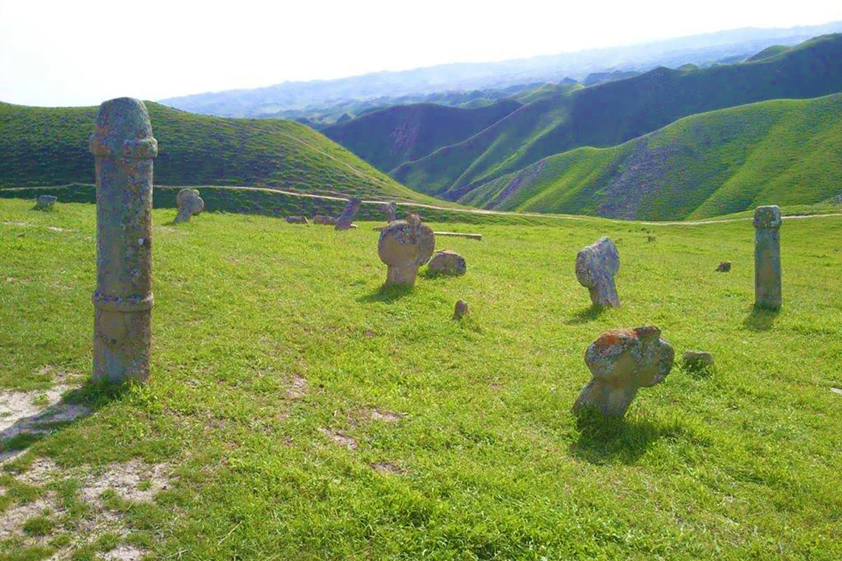 Il y a un vaste cimetière avec une vue imprenable, dont les pierres tombales sont visibles sous forme de cylindres d'une hauteur d'environ 2 mètres. Il semble que plus de 600 pierres tombales se trouvent dans le cimetière de Khalid Nabi.