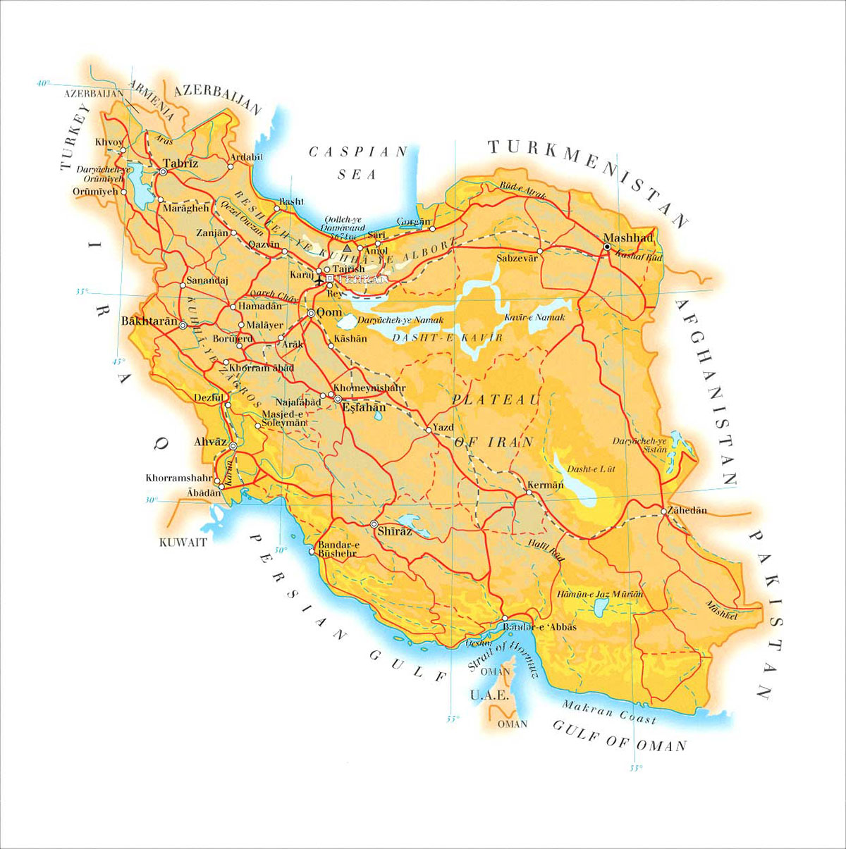 L'Iran est situé en Asie du Sud-Ouest, en bordure du golfe d'Oman, du golfe Persique et de la mer Caspienne, entre l'Irak et le Pakistan. L’Iran est l’un des pays les plus montagneux du monde. Ses montagnes ont contribué à changer l'histoire politique et économique du pays pendant plusieurs siècles. Les montagnes renferment plusieurs grands bassins, ou plateaux, sur lesquels se situent les principaux peuplements agricoles et urbains. Jusqu'au XXe siècle, lorsque les principales autoroutes et voies ferrées étaient construites à travers les montagnes pour relier les centres de population, ces bassins avaient tendance à être relativement isolés les uns des autres.